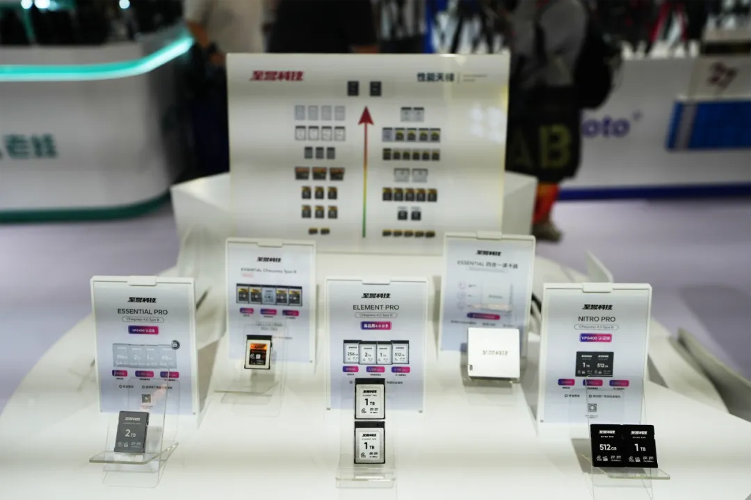 在本次展示活动中,至誉科技携全系列影视生态存储产品亮相此次展出的产品阵容强大,涵盖 CFexpress Type A、CFexpress Type B、SD、microSD等多种规格的存储卡,以及与之配套的专业读卡器。同时,固态移动存储设备也悉数登场,全面满足影视行业从前期拍摄到后期制作、从个人便携到商业应用等不同场景的存储需求。