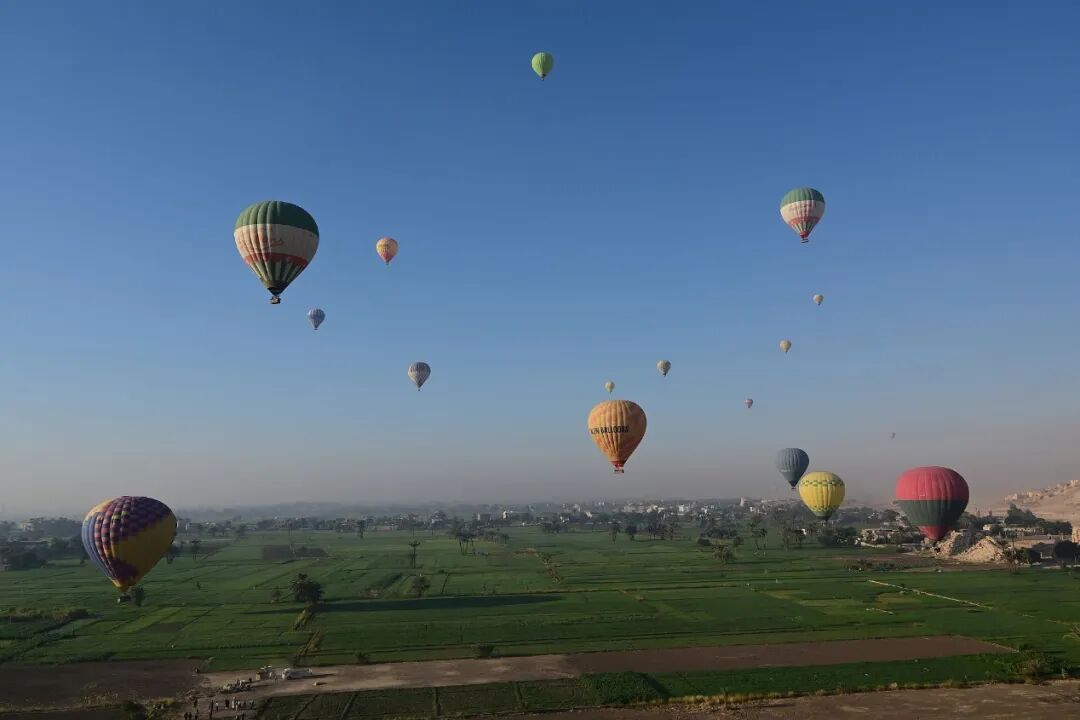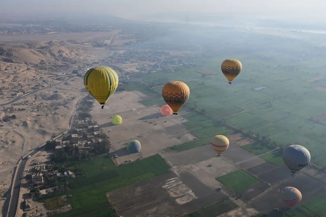 凌晨四点,卢克索的天空还笼罩在深蓝色的夜幕中,我们驱车前往帝王谷,准备乘坐热气球迎接日出。当第一缕阳光洒在金色的沙丘上时,我们乘坐着色彩斑斓的热气球缓缓升空。从高空俯瞰,帝王谷的壮丽景色尽收眼底,仿佛一幅动人的画卷在我眼前徐徐展开。