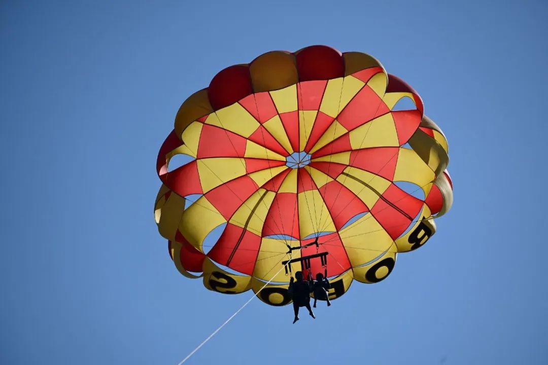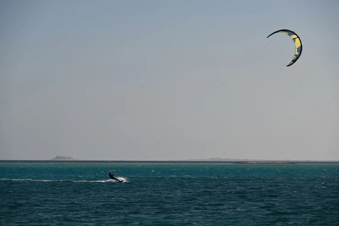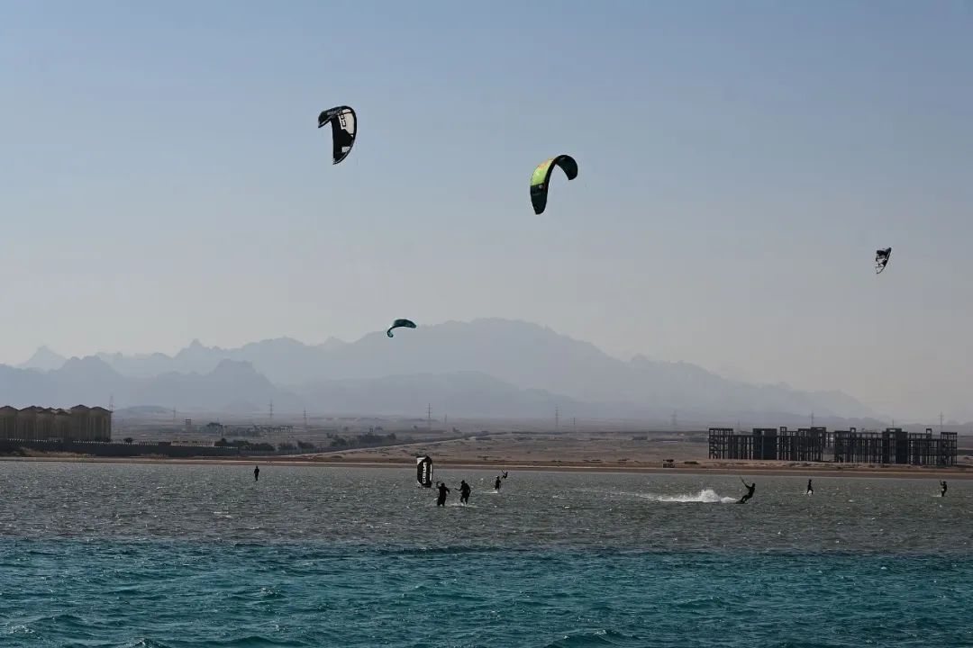 在赫尔格达,除了潜水之外,我的小伙伴还尝试了拖拽伞这一极限运动。拖拽伞是一种利用快艇拖拽的降落伞,让游客在空中自由飞翔的极限运动。当我在快艇上看到被船不断拉升的小伙伴在红海上空翱翔时,我想着一定非常惊险与刺激。