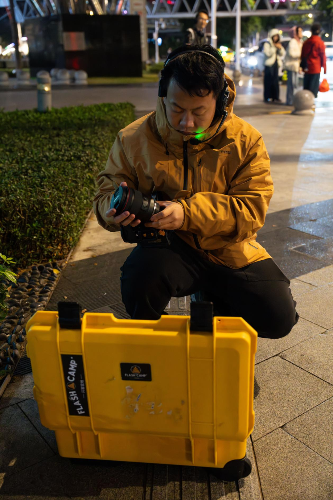 (夜景拍摄,这个时候可以看到机器镜头都是完全湿了)