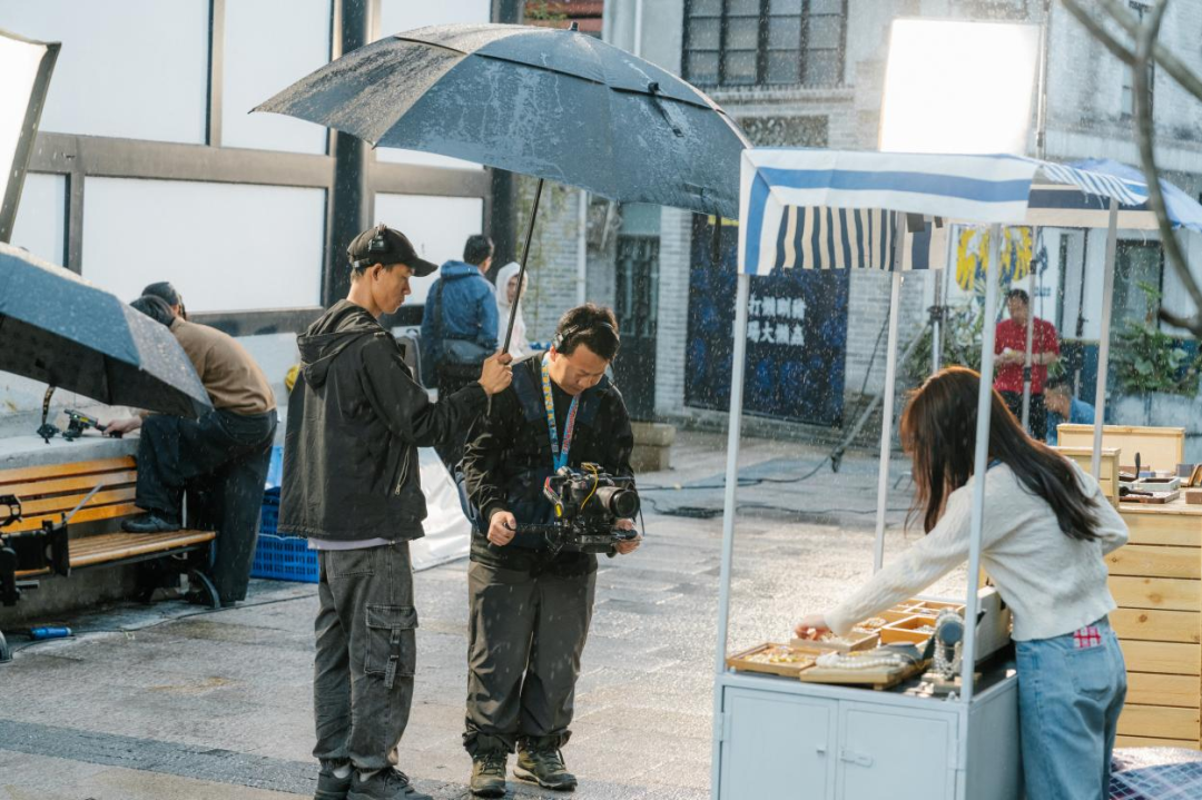 在第二天拍摄时便开启全雨天的拍摄,在第二天下的拍摄就算是打着一把一米八的雨伞也没有办法做到全防水,但是对于拍摄来说已经没办法去做防护(保鲜膜、雨衣),随时随地的需要切换镜头转场让我们扛着雨就去拍(连器材箱都没有办法找到好的位置进行摆放防雨)