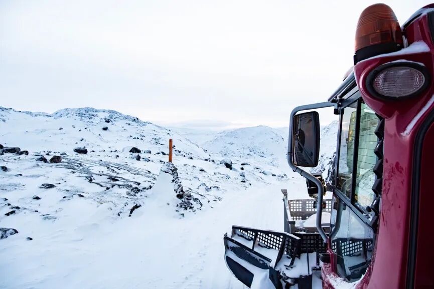 一早9.30(是的天还是没有亮的情况),我们的交通工具来了,我们今天将乘坐这辆(不知道怎么称呼的车型)前往因纽特人的捕猎区(无人区)进行极光的拍摄。