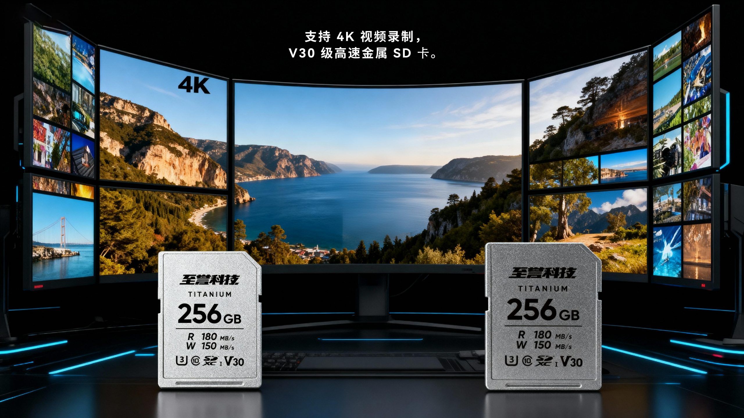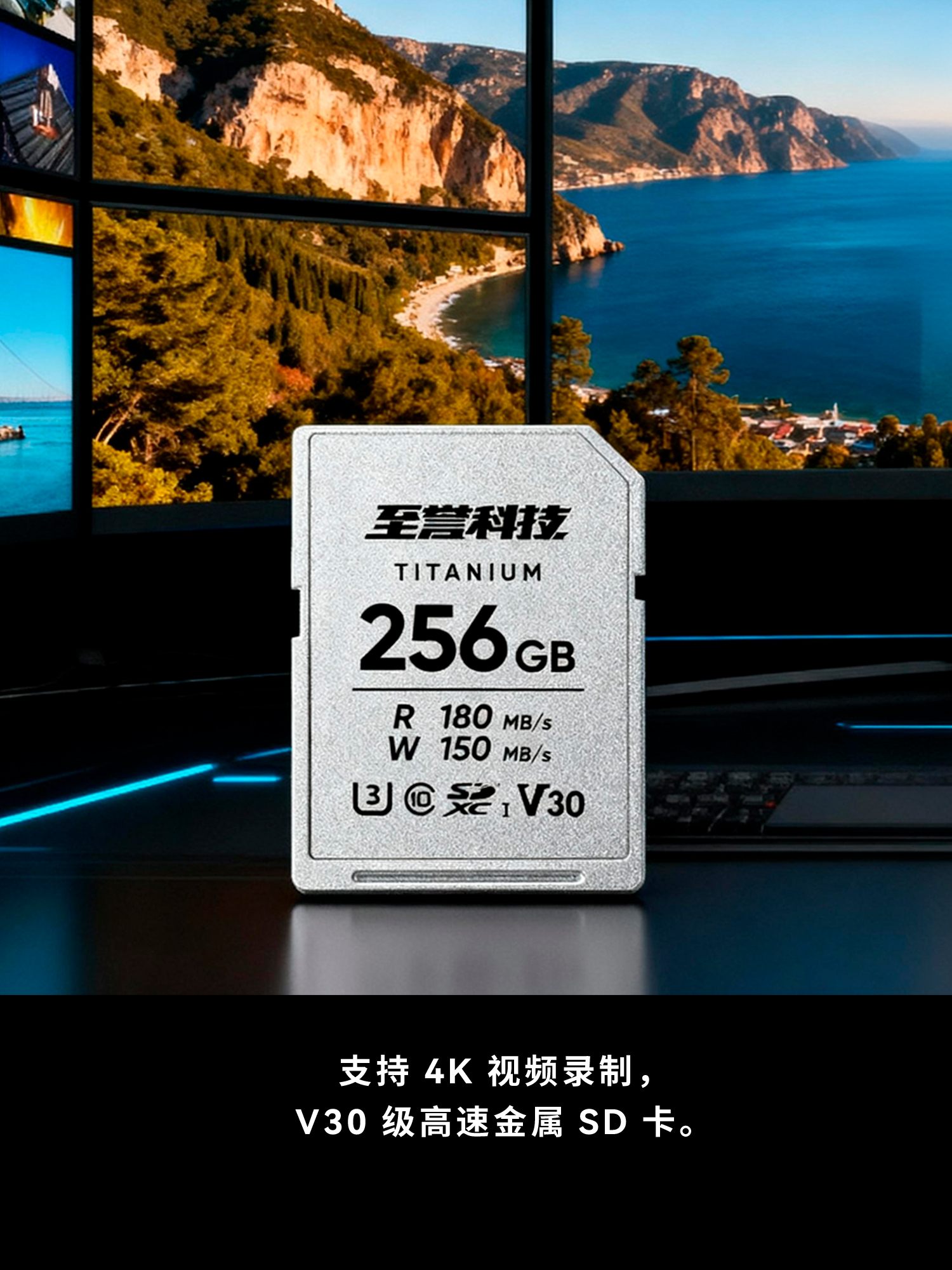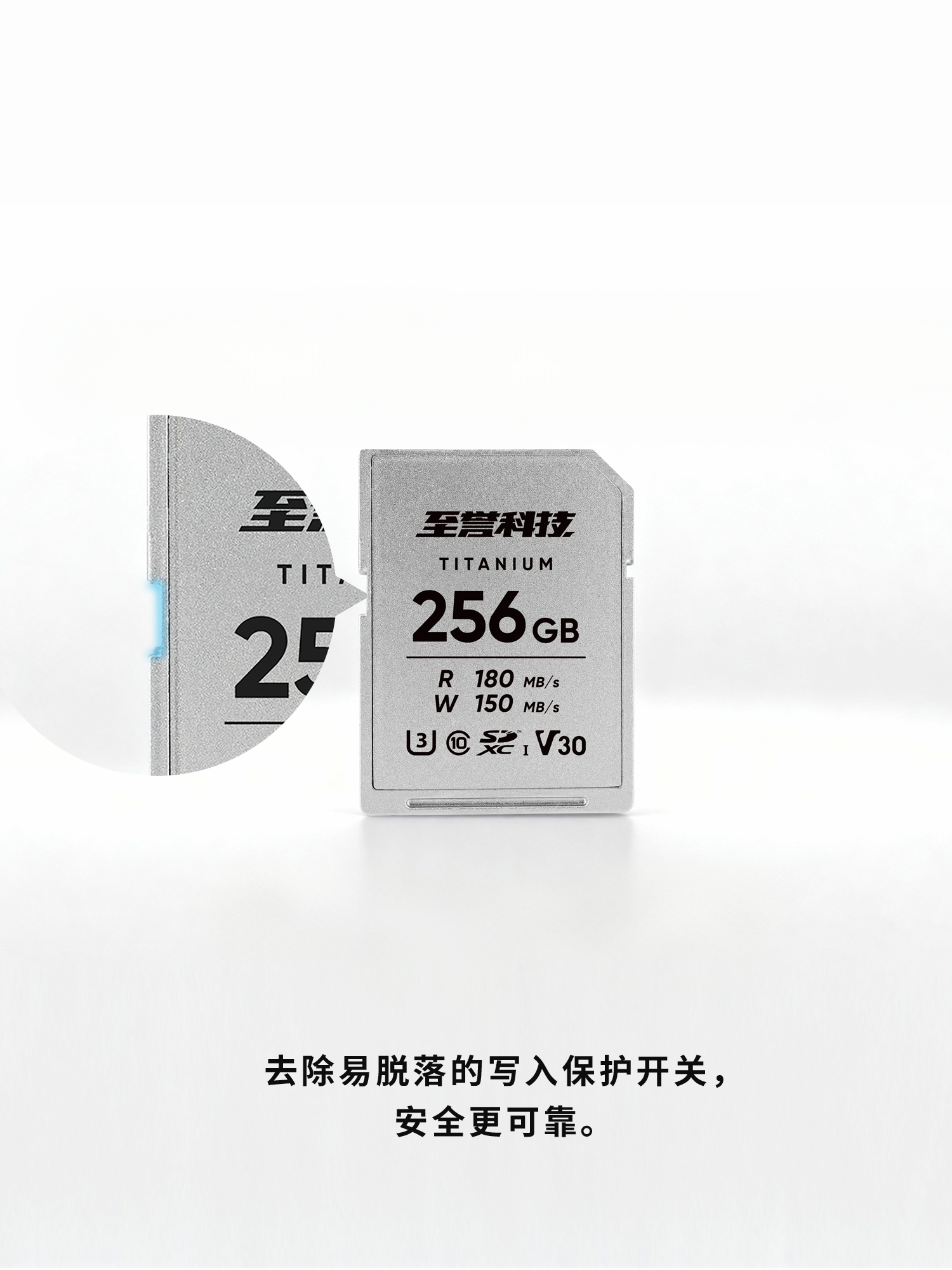 产品特性一览 硬核玩家必备 尽情释放您的想象力 4K 支持4K高清视频录制 拍摄畅通无阻 180MB/s 高速传输效率提升 读取速度高达150MB/s 可选容量 256GB/128GB 接口标准 UHS-I(单排金手指) 闪存类型 3D TLC 强大的兼容性 稳定匹配主流机型